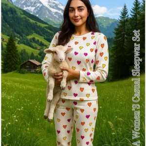 Cozy Winter Fleece Sleepwear Set for Women | Casual Heart Print Loungewear Pyjama